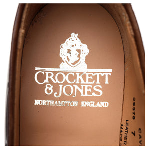 Crockett & Jones 'Cavendish 2' tassel loafers in dark brown burnished calf. In excellent used condition, showing minor signs of wear.