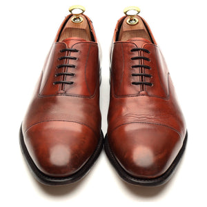 Cheaney 'Churchill' cap toe oxford in tan brown calf. In excellent used condition, showing minor signs of wear.