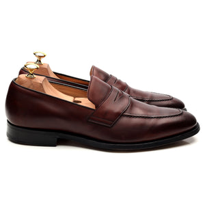 Church's 'Hertford' penny loafers in burgundy calf. In excellent used condition, showing minor signs of wear.