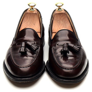 Church's 'Keats II' tassel loafer in burgundy polished calf. In excellent used condition, showing minor signs of wear.