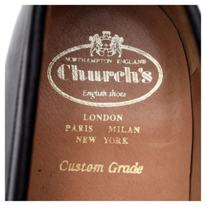 Church's 'Wesley' penny loafers in black calf. In excellent used condition, showing minor signs of wear.