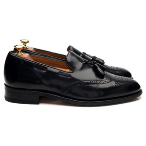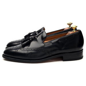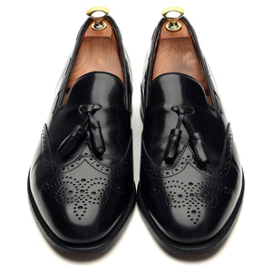 Barker 'Clive' tassel loafers, with broguing, in black polished calf. In excellent used condition, showing minor signs of wear.