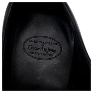 Crockett & Jones 'Egerton' cap toe oxford in black calf. In good used condition, showing signs of heavy wear, with multiple scratches and scuffs to the uppers. Note, these have been refurbished by C&J.