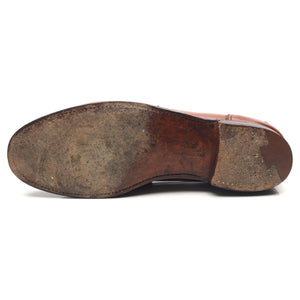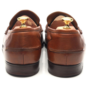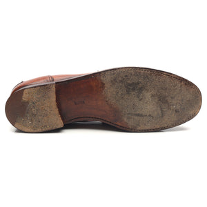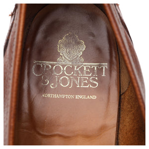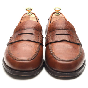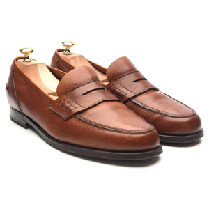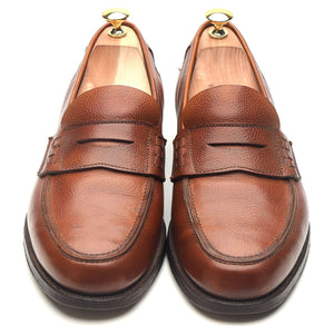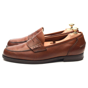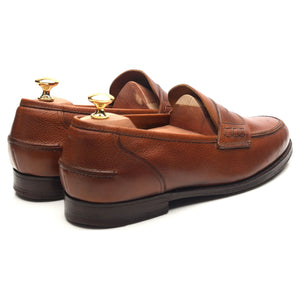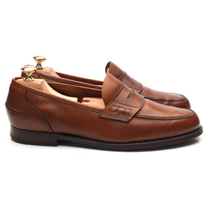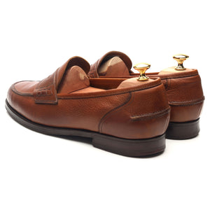 Crockett & Jones unlined penny loafer in tan brown grain calf. In very good used condition showing moderate signs of wear. Note, these are marked as 'subs' due to the scratch on the right show.
