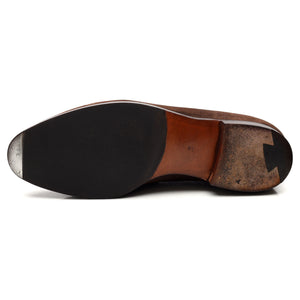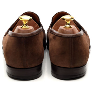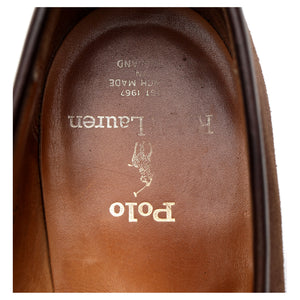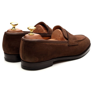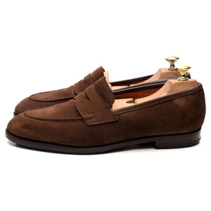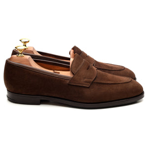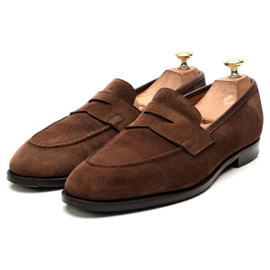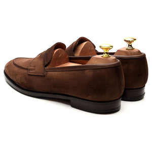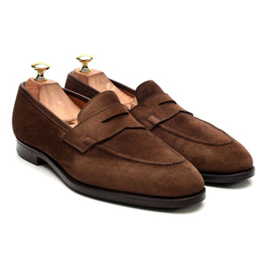 Crockett & Jones manufactured for Ralph Lauren penny loafer in brown suede. In very good used condition, with moderate signs of wear.