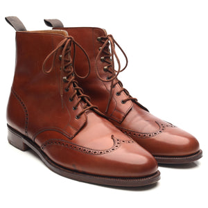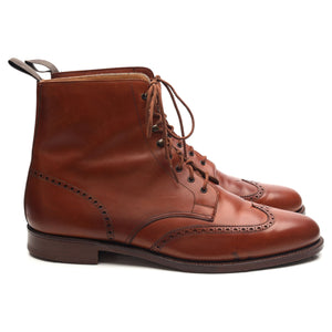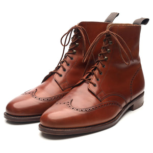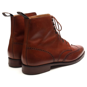 Crockett & Jones manufactured for Gordon Scott  'Cavalry' brogue boots in tan brown calf. In excellent used condition. Note, these are marked as 'subs', there is a scratch on the vamp of the left boot and marks of discoloration on the right.