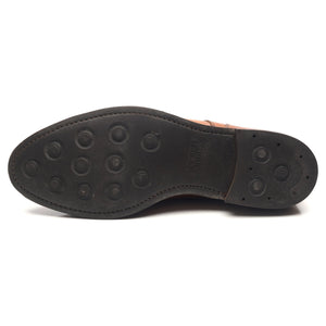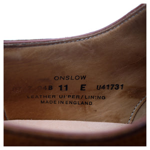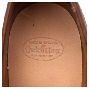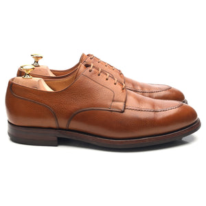 Crockett & Jones 'Onslow' apron derby in tan brown grain calf. In excellent used condition, with minor signs of wear. There is a scratch on the left vamp by the apron, the insocks have also been replaced.