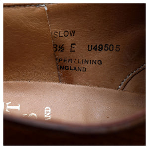 Crockett & Jones 'Onslow' apron derby in tan brown grain calf. In very good used condition, with moderate signs of wear. Note, the heel liners have been repaired.