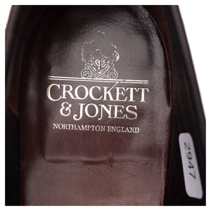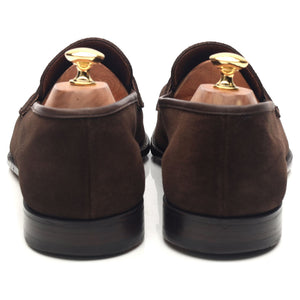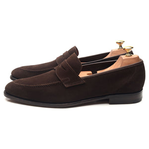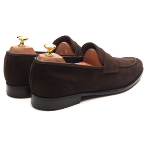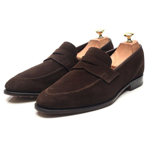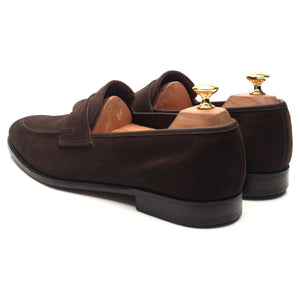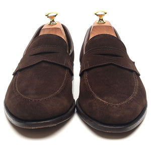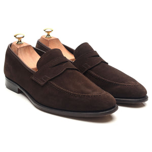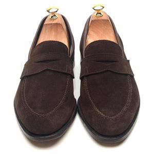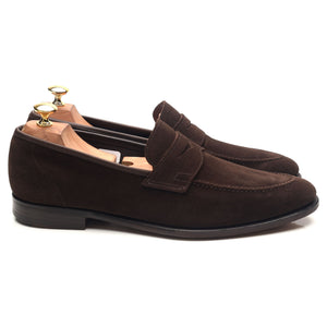 Crockett & Jones 'Teign' unlined penny loafer in dark brown suede. In excellent used condition.