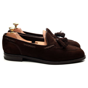 Edward Green 'Belgravia' unlined tassel loafers in Mink dark brown suede. In excellent used condition.