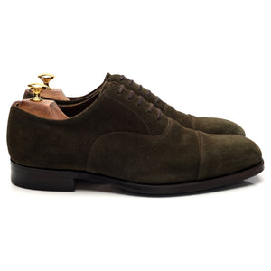 Grenson vintage cap toe oxford in dark green suede. In excellent used condition.