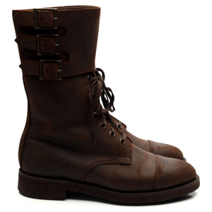 Crockett & Jones 'Ella' high leg Biker boots in Dark Brown Rough Out Suede. In excellent used condition.