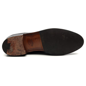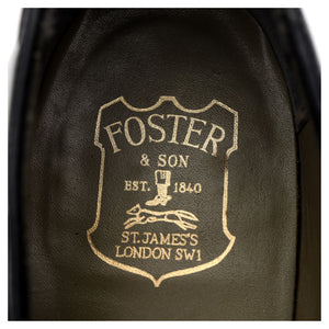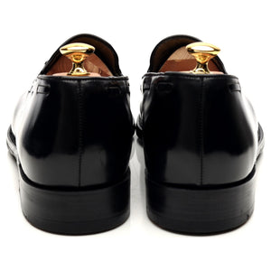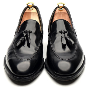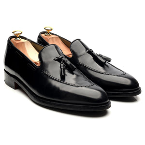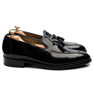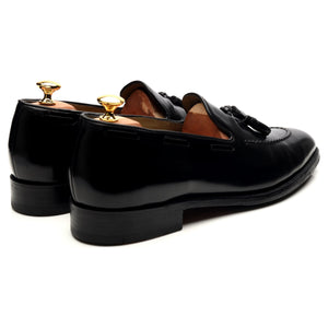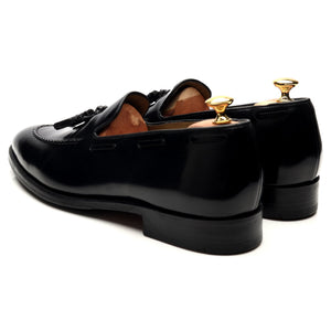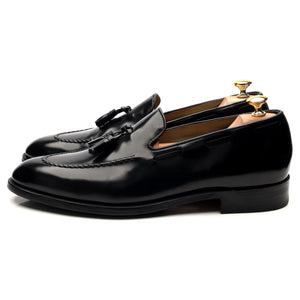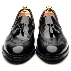 Foster & Son tassel loafer in polished black leather. In excellent used condition, showing minor signs of wear.