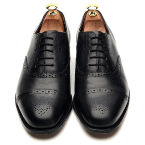Barker manufactured for Leonard Jay 'Gatwick' cap toe oxford semi brogues in black calf. In excellent used condition, showing minor signs of wear.