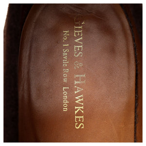 Alfred Sargent manufactured for Gieves & Hawkes penny loafer in brown suede. In excellent used condition, showing minor signs of wear.