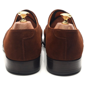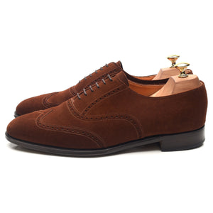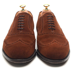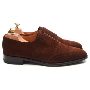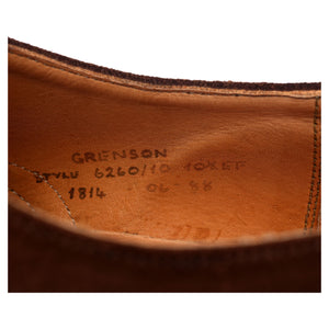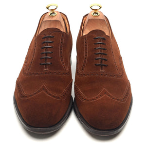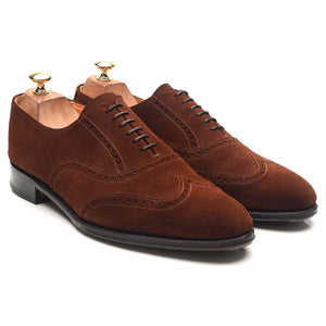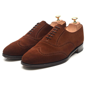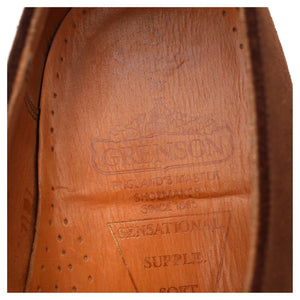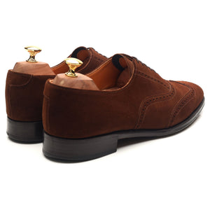 Grenson brogue in brown suede. In excellent used condition, with minor signs of wear.