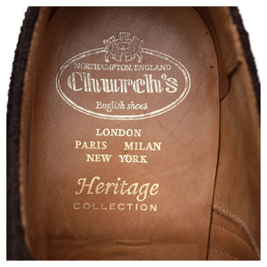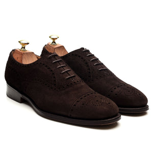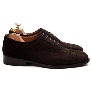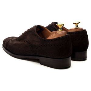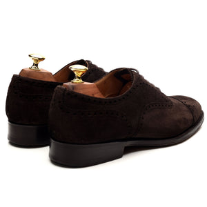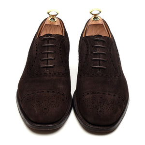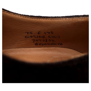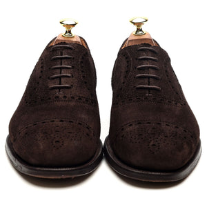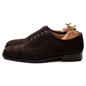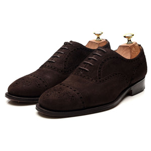 Church's 'Highgrove' oxford semi brogue in dark brown suede. In excellent used condition, showing minor signs of wear.
