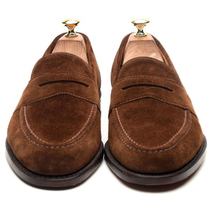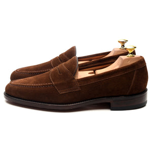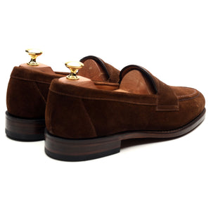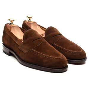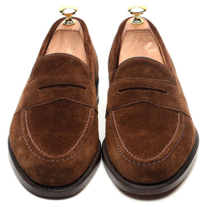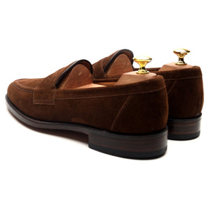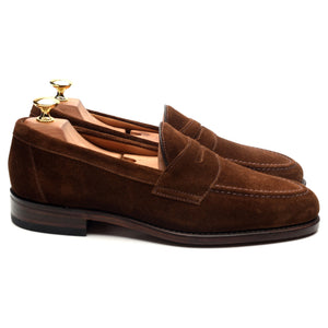 Loake 'Imperial' penny loafer in snuff brown suede. Showing minor marks from storage.