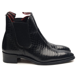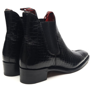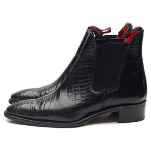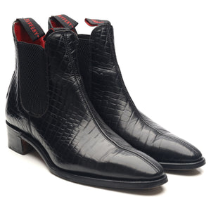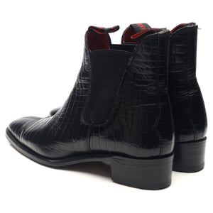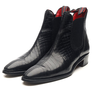 Jeffery West Chelsea boots in black hatched calf. In excellent used condition, with minor signs of wear.