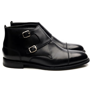 Cheaney 'Freeman' double monk strap boots in black calf. In excellent used condition with minor signs of wear.