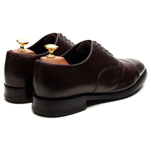 Herring manufactured by Loake 'Knightsbridge' cap toe oxford in Tobacco dark brown calf. In very good used condition, with moderate signs of wear.