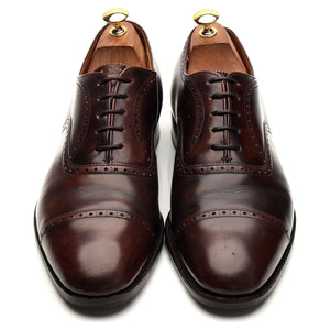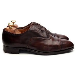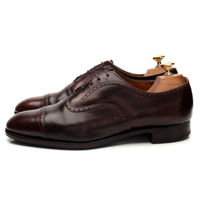 Church's 'Legate' cap toe oxford, with broguing, in brown polished calf. In very good used condition, showing moderate signs of wear.