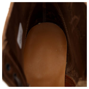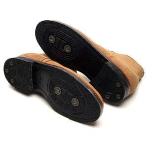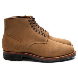 Viberg plain toe Service boots in sand suede. In excellent used condition, showing minor signs of wear.