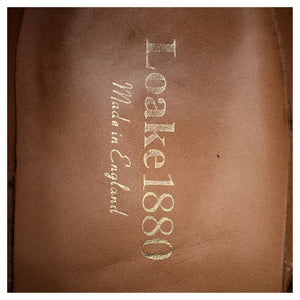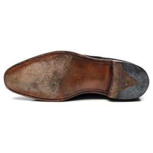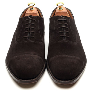 Loake 1880 'Aldwych' cap toe oxford in dark brown suede. In excellent used condition.