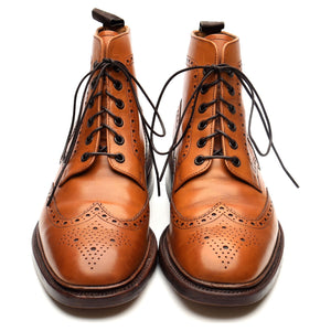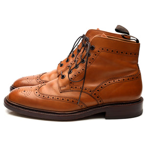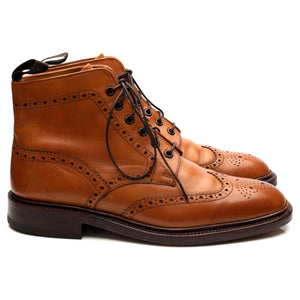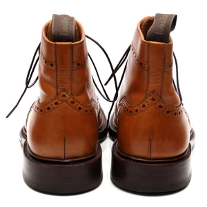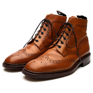 Loake 1880 'Burford' brogue boots in tan brown calf. In excellent used condition, showing minor signs of wear.