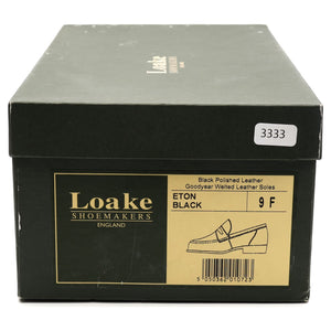 Loake 'Eton' penny loafer in black polished calf. In excellent used condition with minor signs of wear.