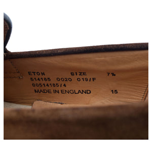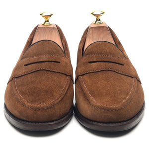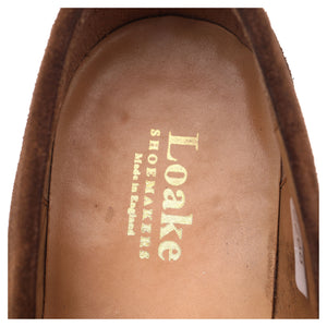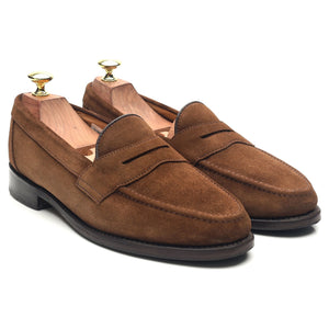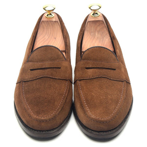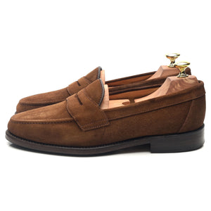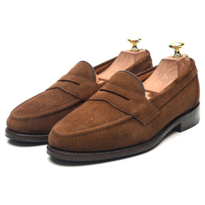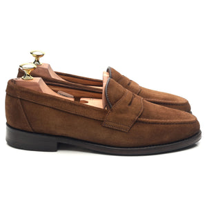Loake 'Eton' penny loafer in snuff brown suede. In excellent used condition with minor signs of wear.
