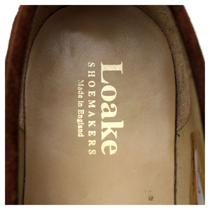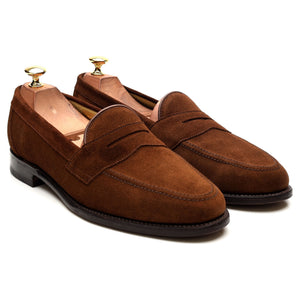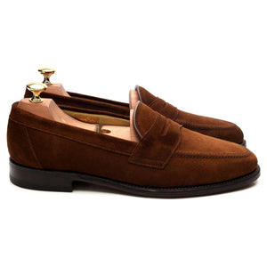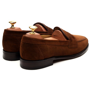 Loake 'Eton' penny loafer in snuff brown suede. In excellent used condition with minor signs of wear.