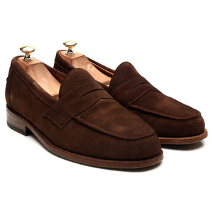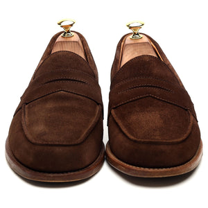 Sanders 'Madrid' penny loafers in dark brown calf. In very good used condition, showing moderate signs of wear. Note, there is a slight colour difference between the two shoes.