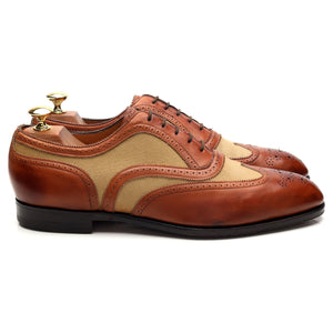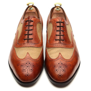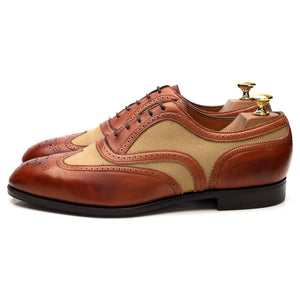 Edward Green 'Malvern' oxford wingtip brogue in tan brown antique calf and beige canvas. In excellent condition.