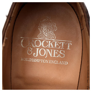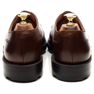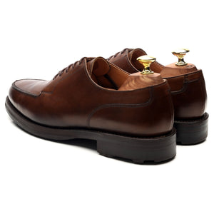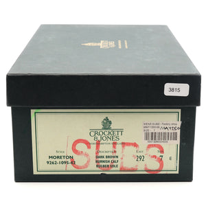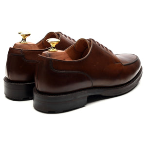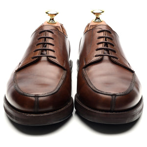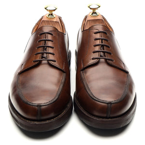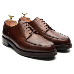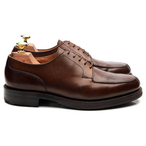Crockett & Jones 'Moreton' split toe derby in dark brown burnished calf. In excellent used condition, with minor signs of wear. Note, these are marked as 'subs'.