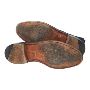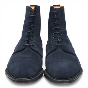 Alfred Sargent manuafctured for J. Crew cap toe boots in navy blue suede. In excellent used condition, showing minor signs of wear.