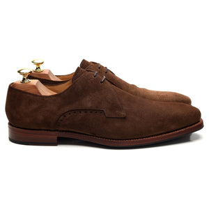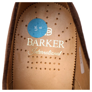 Barker 'Oscar' plain toe derby in brown suede. In excellent used condition.