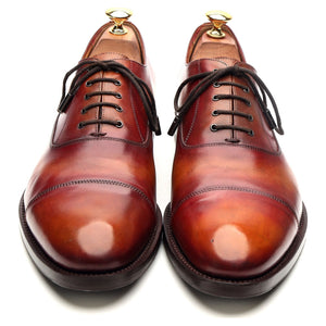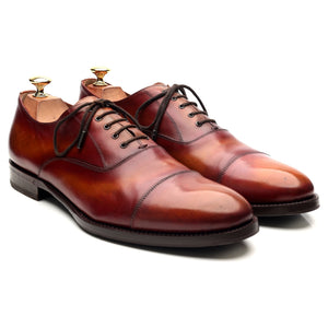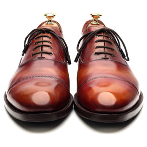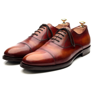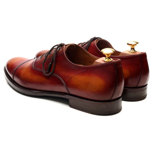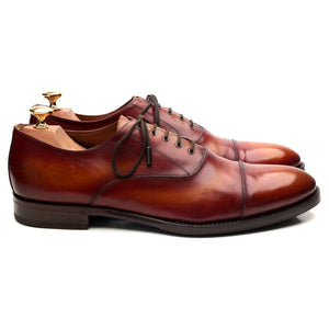Ozwald Boateng oxford with tan brown patina calf. In excellent used condition, minor scratch on toe cap of left shoe.