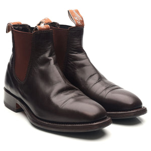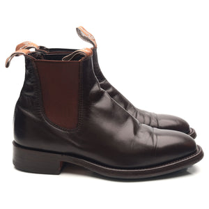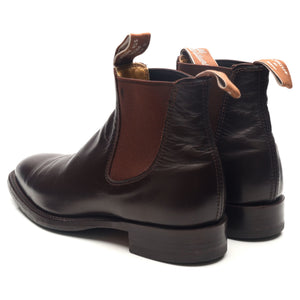 R.M. Williams 'Comfort Macquarie' chelsea boots in dark brown yearling calf. In very good used condition, with moderate signs of wear.