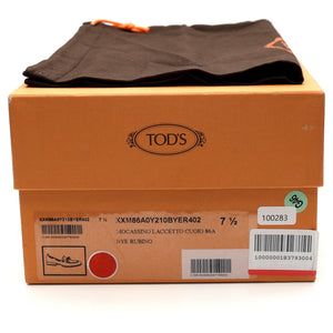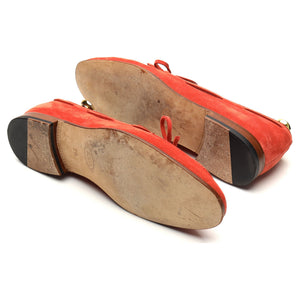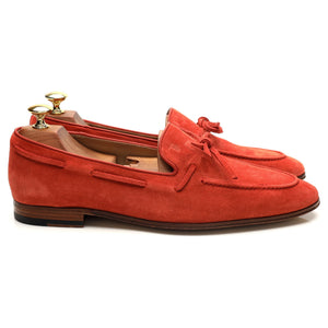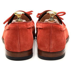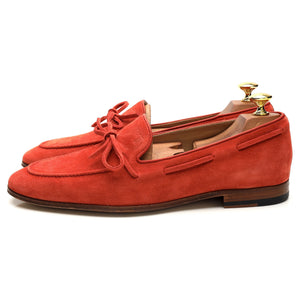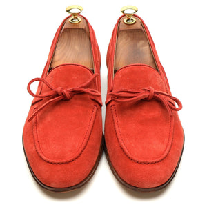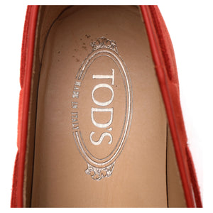 Tod's string loafer in Rubino red suede. In excellent condition.