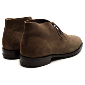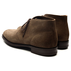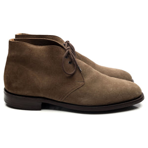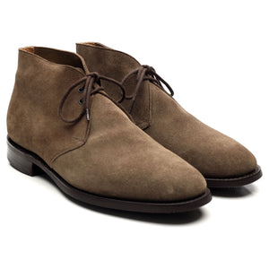 Church's 'Sahara' unlined chukka boots in 'Mud' light brown suede. In excellent used condition, with minor signs of wear.