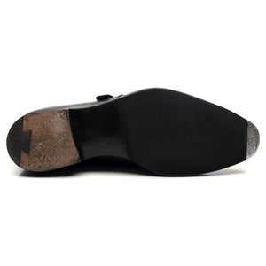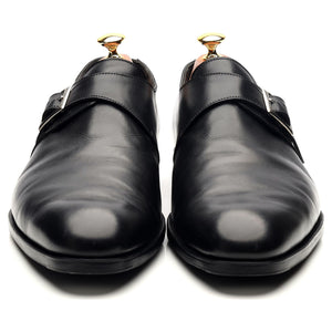 Crockett & Jones 'Savile 4' monk straps with in black calf. In excellent used condition, with creasing across the vamps and light wear to the heels.