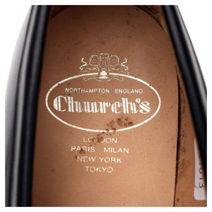 Church's 'Sears' penny loafer in black calf. In excellent used condition, showing minor signs of wear.