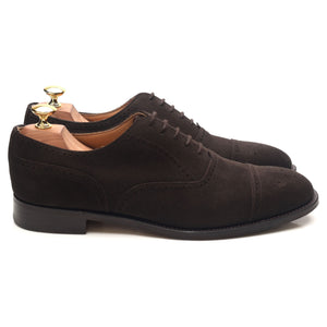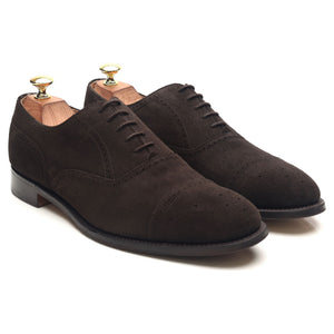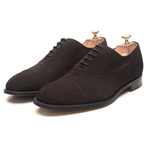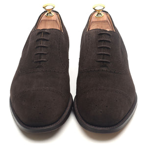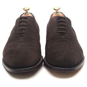 Cheaney manufactured for Shipton & Heneage 'Harris' oxford semi brogues in dark brown suede. In excellent condition