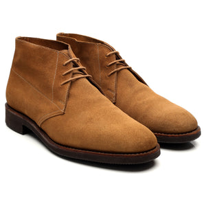 Crockett & Jones manufactured for Shipton & Heneage 'Chertsey' chukka boots in sand brown suede. In excellent used condition, showing minor signs of wear.