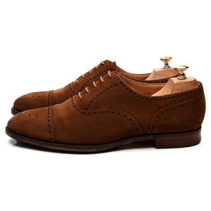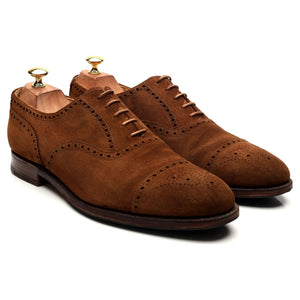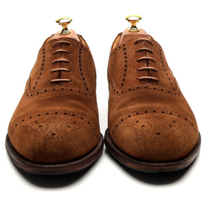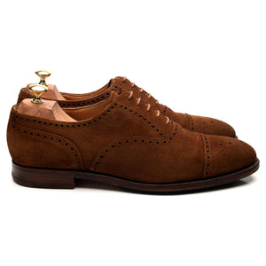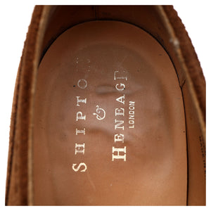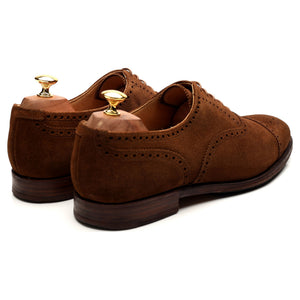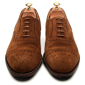 Crockett & Jones manufactured for Shipton & Heneage 'Winchester' oxford semi brogues in snuff tan brown suede. In excellent used condition, showing minor signs of wear.