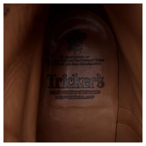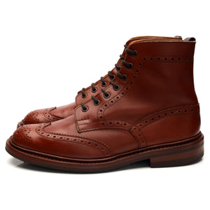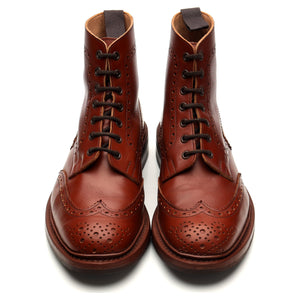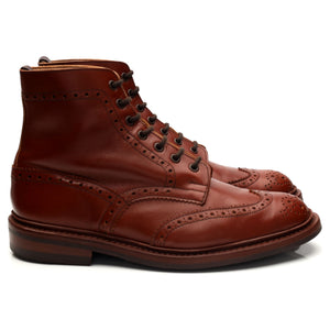 Tricker's 'Stow' brogue country boots in 'marron antique' brown calf. In excellent used condition, showing minor signs of wear.