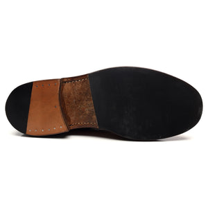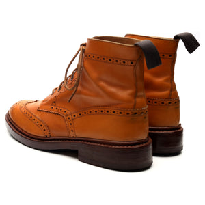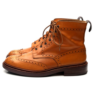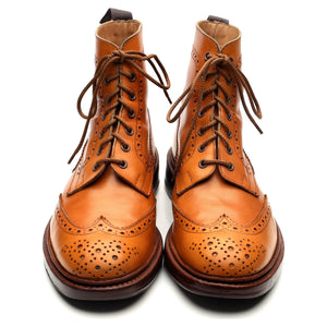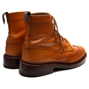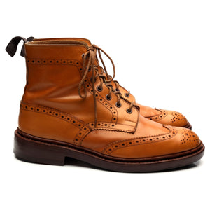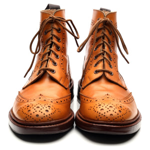 Tricker's 'Stow' brogue boots in Acorn tan brown calf. In excellent used condition, with minor signs of wear.