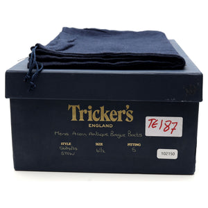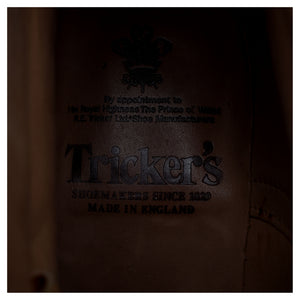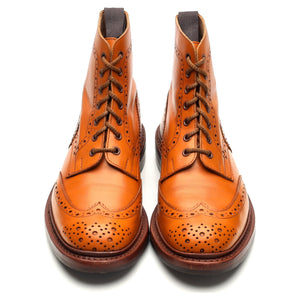 Tricker's 'Stow' brogue boots in 'acorn antique' tan brown calf. In excellent used condition, showing minor signs of wear.