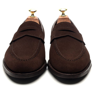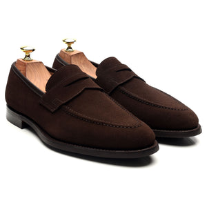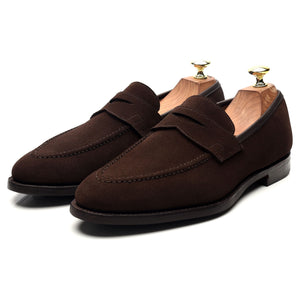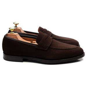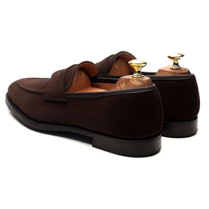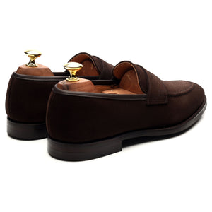 Crockett & Jones 'Sydney' loafer in dark brown suede. Note, these show signs of being tried on.